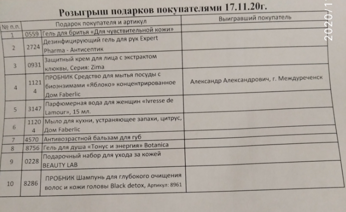 Результаты розыгрыша подарков можете посмотреть на фото.