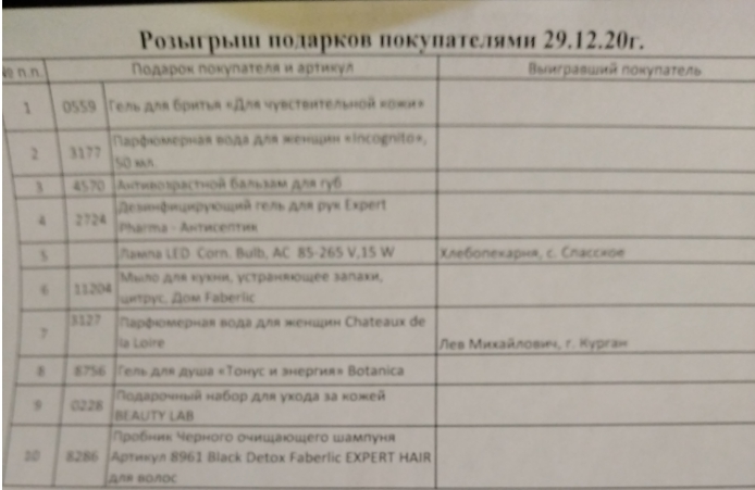 Результаты розыгрыша подарков можете посмотреть на фото.