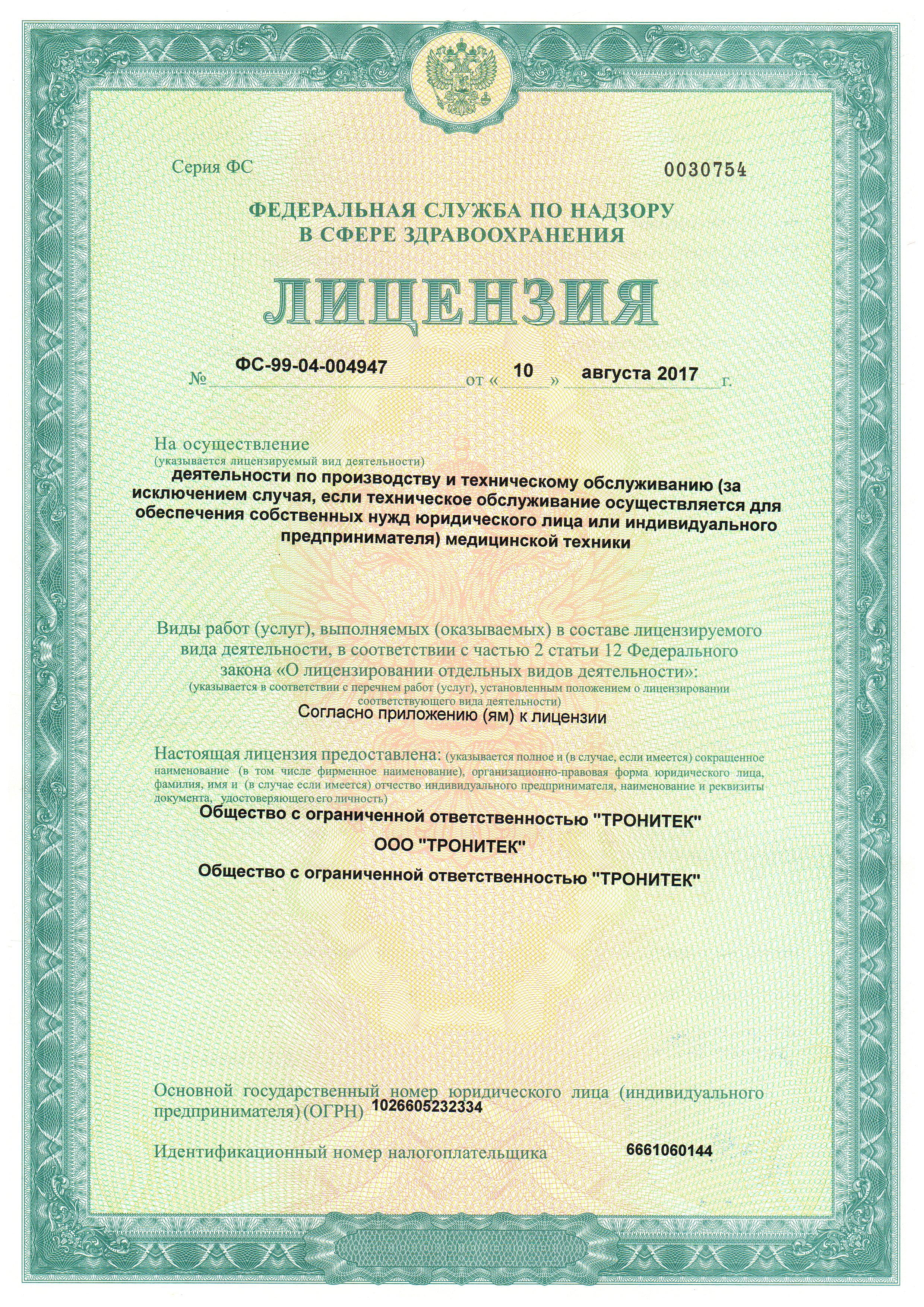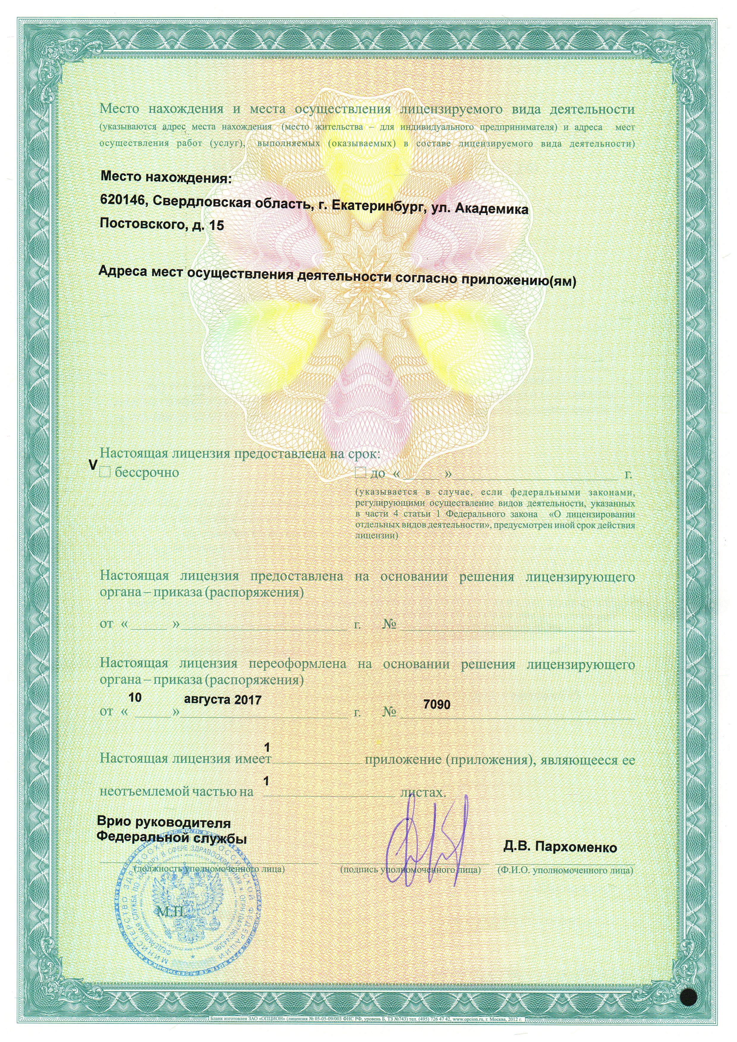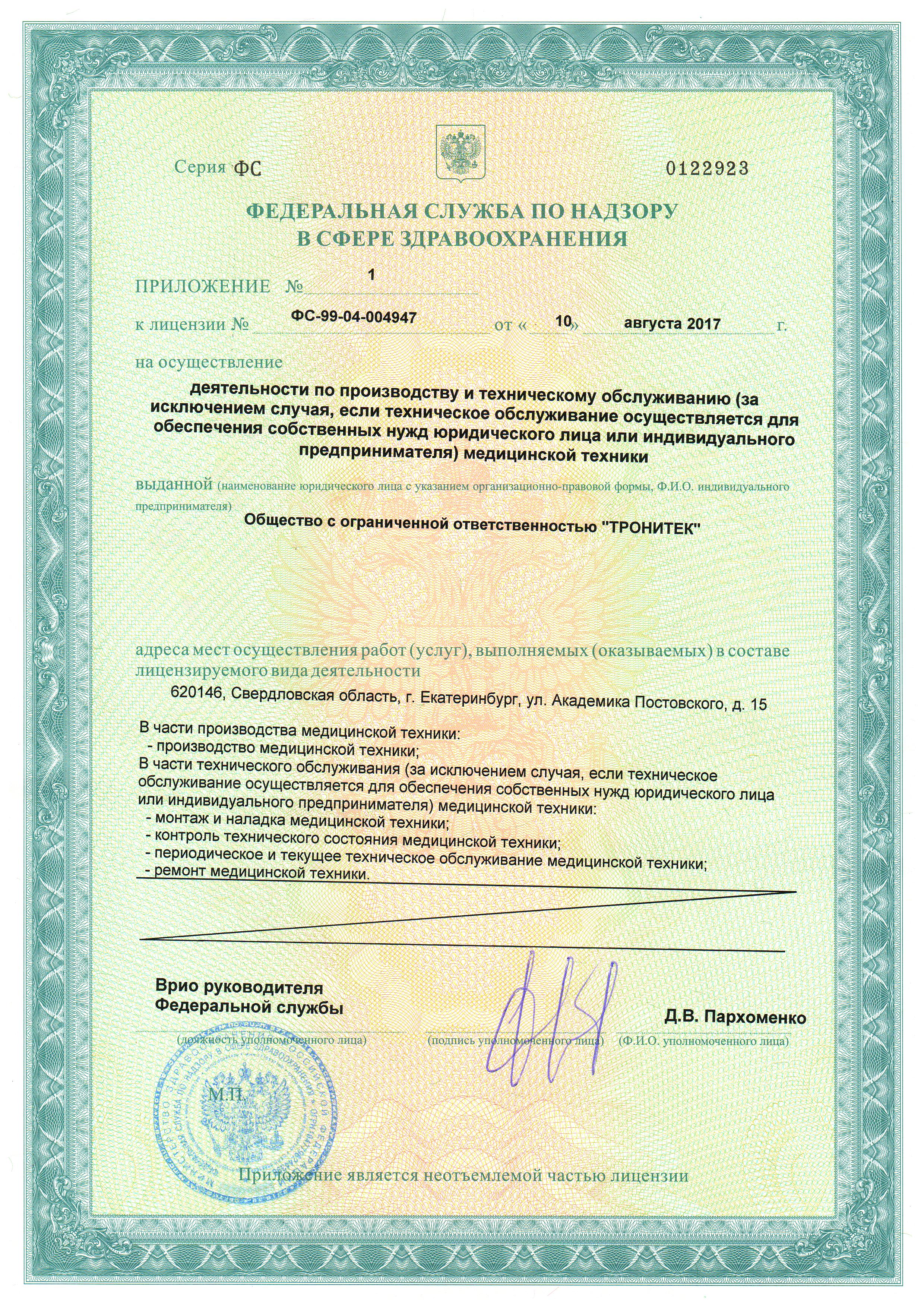 Приложение к лицензии к аппарату ДЭНАС-Кардио