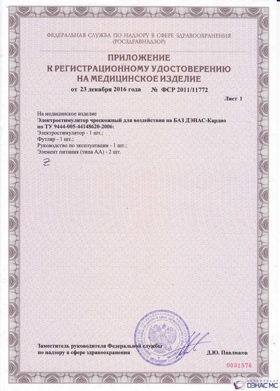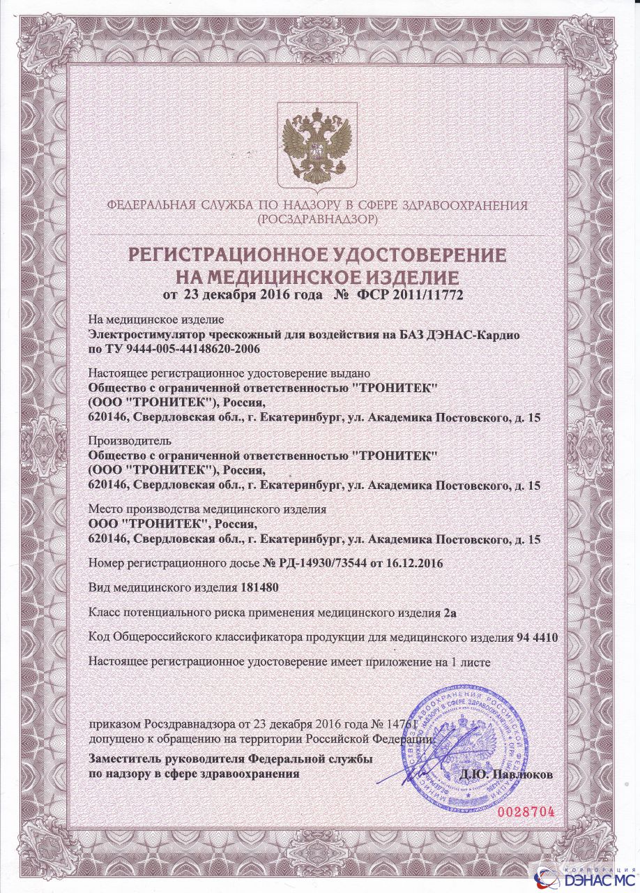 Фотогалерея » Документы на аппарат ДЭНАС-Кардио