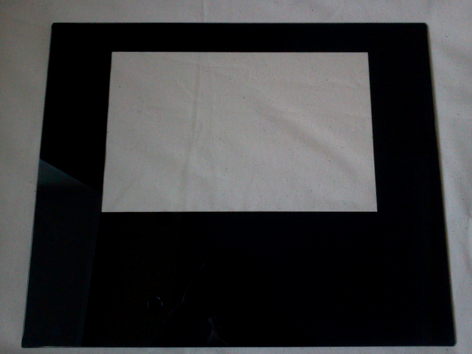 Стекло наружное плиты "Лысьва" двухцветное (498мм*430мм)имеет крепежные кронштейны, приклеенные к стеклу специальным клеем.