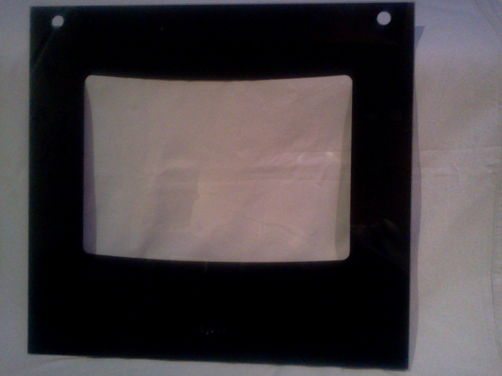 Стекло наружное, декорированное плиты "Лысьва", черное 497х460 с отверстиями для крепления ручки.