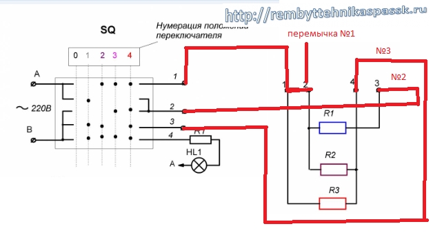 Схема подключения переключателя мощности ПМЭ-16-23-5230-00 УХЛ4 для коммутации конфорки бытовых плит с 3 нагревательными элементами изображена на дополнительном рисунке.
