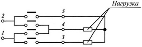 Схема подключения переключателя ТПКП-М УХЛ4 для переключения мощности нагревательных элементов конфорки и духовки отечественных промышленных плит