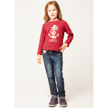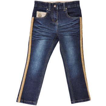 Джинсы с золотыми лампасами цвета индиго: