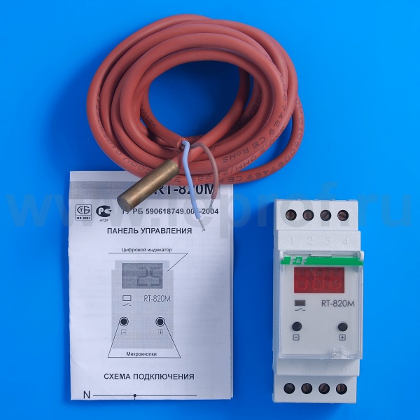 Универсальный регулятор температуры RT-820 M предназначен для контроля и поддержания заданного температурного режима в помещениях, овощехранилищах, водогрейных котлах и котлах отопления и т. п. путем включения/выключения нагревательной или охлаждающей установки по сигналам выносного датчика температуры.
