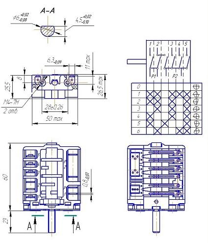 Переключатель ПМ 16-7-03-03 является 7-ми позиционным переключателем мощности конфорок электроплит Лысьва, ЗВИ, Дарина, RICO, Bompani и имеет 0 + 6 рабочих позиций.