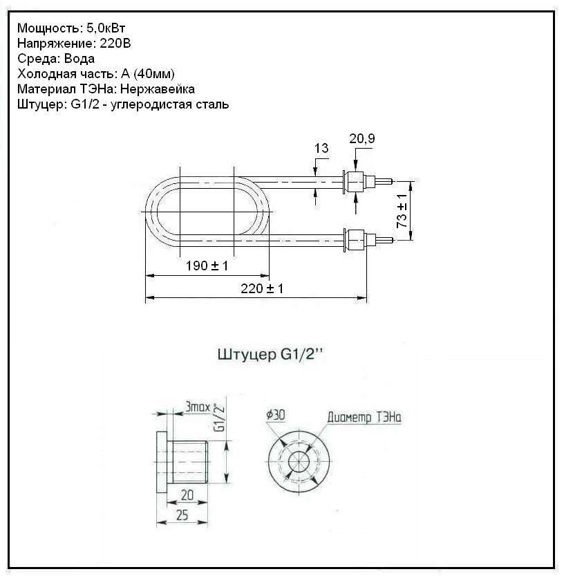 Рабочее напряжение ТЭН - 220В,