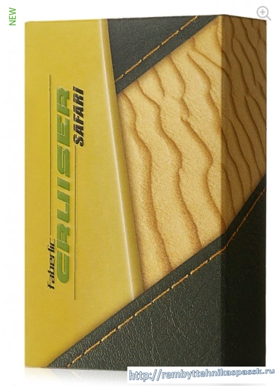 Шлейф туалетной воды для мужчин Faberlic Cruiser Safari завершает: кедровое дерево, кожаная нота, бобы тонка.