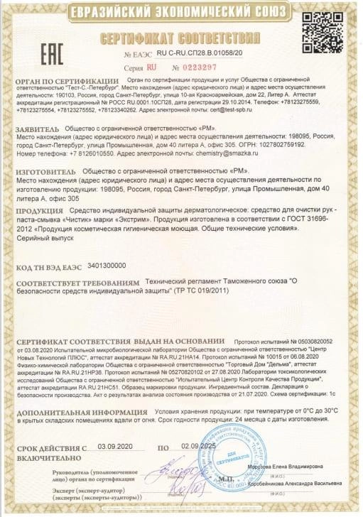 Профессиональная чистящая паста для рук ЧИСТИК EXTREME разработана в соответствие с ГОСТ 31696-2012 специально ДЛЯ ОЧИСТКИ РУК ОТ САМЫХ СИЛЬНЫХ ЗАГРЯЗНЕНИЙ.