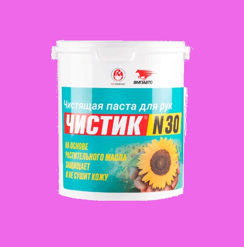 Очищающая паста для рук ЧИСТИК № 30 ВМПАВТО — одна из немногих чистящих паст, способная сделать грубые, загрязненные руки механика нежными и чистыми, такими, как будто он и не работал. Для выполнения процедуры очистки кожи рук от загрязнений необходимо равномерно нанести очищающую пасту для рук ЧИСТИК № 30 ВМПАВТО, на кожу рук, помассировать и смыть небольшим количеством воды.