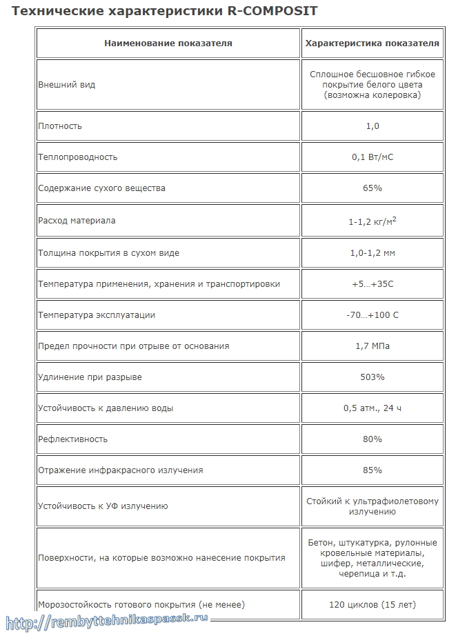 ТЕХНИЧЕСКИЕ ХАРАКТЕРИСТИКИ жидкой полимерной отражающей белой обмазочной ГИДРОИЗОЛЯЦИИ R-COMPOSIT-современного кровельного покрытия отображены на дополнительном фото к товару