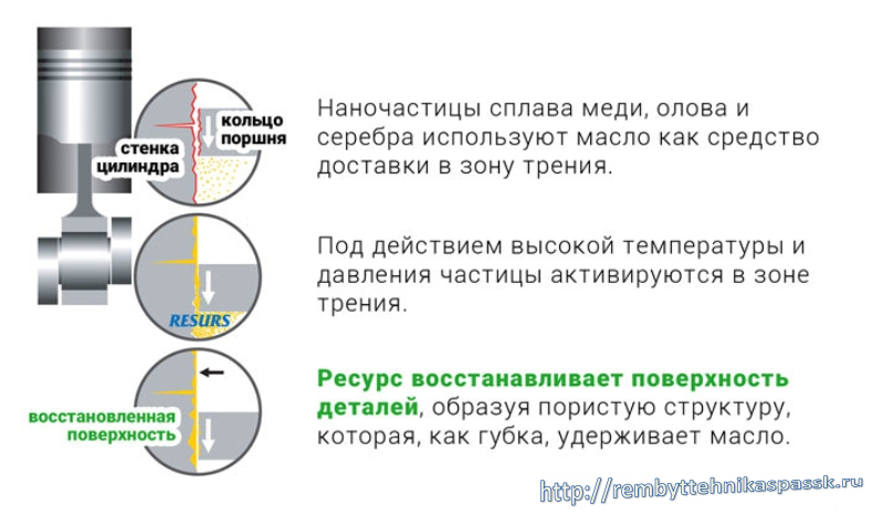 Активный компонент присадки для двигателя реметаллизант ВМПАВТО RESURS Next 75г-нано порошок сплава меди, олова и серебра попадает в зону трения, создавая на поверхности узлов плакирующий слой. Он способен выровнять все микродефекты и улучшить работу деталей цилиндропоршневой группы и подшипников коленчатого вала.