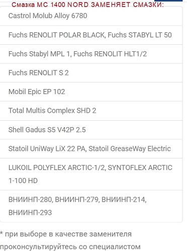 Морозостойкая пластичная смазка NORD MC 1400-ПРИМЕНЕНИЕ