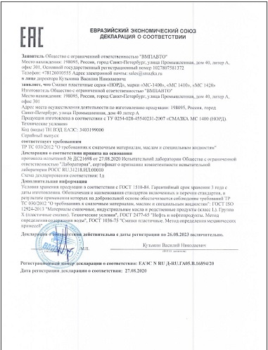 · Высокие антикоррозийные свойства обеспечивают надёжную защиту металлических поверхностей узлов трения от коррозии.