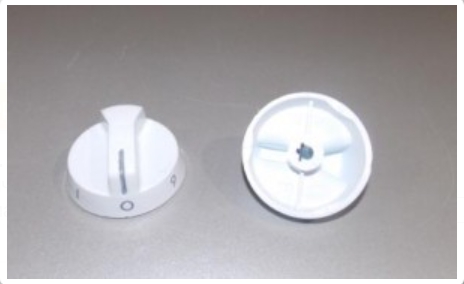 Белая ручка управления конфоркой переключателя электроплиты Лысьва изготовлена из пластика, имеет посадочное отверстие под шток переключателя конфорки Ф 6 мм со шлицом, в которое вставлена пружинная пластинка, благодаря которой ручка управления конфоркой электроплиты Лысьва прочно удерживается на штоке переключателя мощности конфорки. Белая ручка управления конфорки электроплиты Лысьва имеет маркировку из цифр черного цвета 0–1-2-3-4-5-6, соответственно показывающую положение переключателя мощности конфорки, соответствующее следующим положениям: