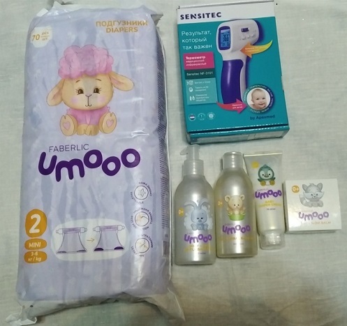 6. Подгузники Фаберлик Mini Umooo (вес ребенка 3–6 кг), артикул 910411. Возможна замена на подгузники Фаберлик Mini Umooo с большим весом ребенка, при этом общая цена набора подарок новорожденному ребенку и маме младенца останется прежняя.