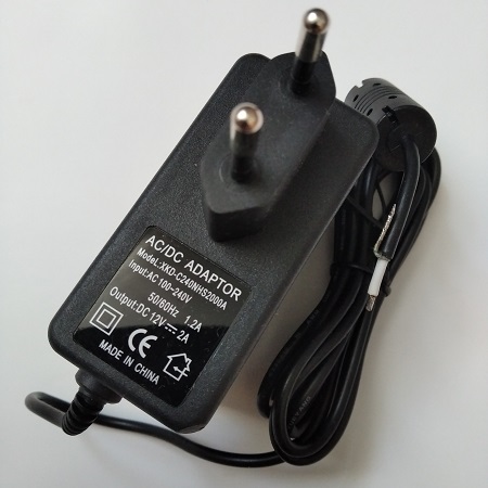 Источник питания-импульсный блок питания 12 вольт 2 Ампера XKD-C240NHS2000A не имеет выходного штекера, его центральный вывод имеет знак "+", поэтому данный импульсный блок питания можно использовать как для питания приборов, соответственно припаяв концы провода выходного напряжения к соответствующим клеммам схемы питаемого электроприёмника, либо оснастить штекером нужной конфигурации для питания Вашего электроприёмного устройства.