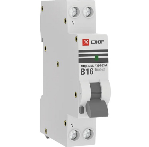 На дифференциальный автоматический выключатель EKF АВДТ-63М 16 А 30 мА 1мод., х-ка B, электронный тип A, 6кА PROxima