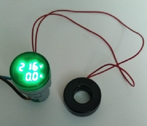 Для определения силы тока, протекающего в цепи, проводник пропускается в отверстие катушки измерительного трансформатора тока индикатора AD16-22AV-электронный цифровой миниатюрный вольтметр амперметр-арматура светосигнальная зеленая.