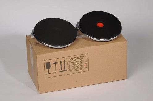 Экспресс конфорки ЭКЧ 145-1,5-220 В без кольца завода Элекон упакованы в картонные коробки по 8 штук со следующими параметрами: