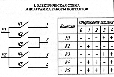 Схема или диаграмма включения контактов переключателя ПМ 16-5-01 изображена на дополнительном рисунке.